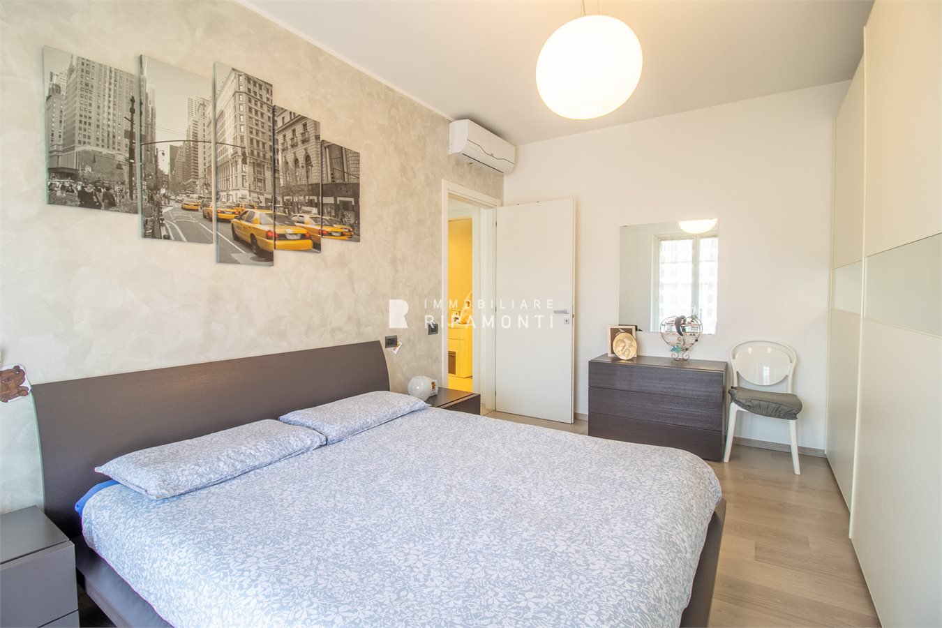 Posto al piano secondo senza ascensore, si compone di ingresso con comoda zona guardaroba, soggiorno con cucina a vista entrambi affacciati su un primo balcone di ampie dimensioni, disimpegno notte, camera e camera matrimoniale con comodo balcone, bagno padronale.