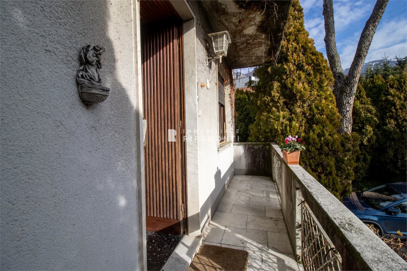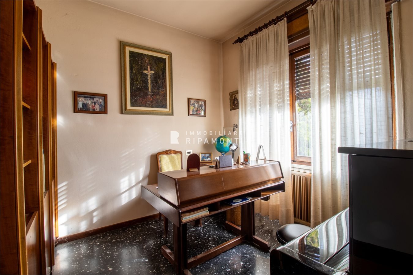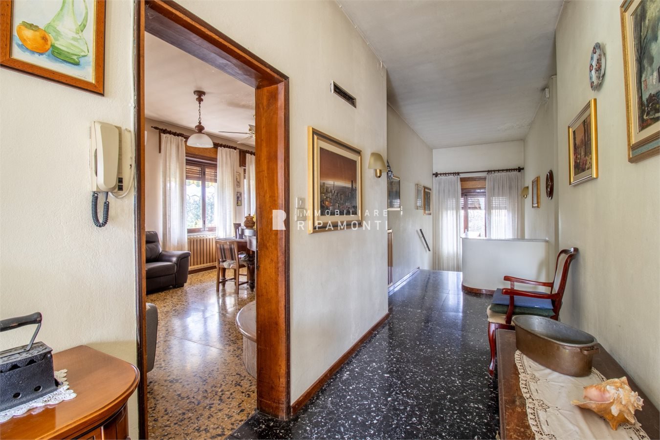 Si compone di scala esterna, ingresso, disimpegno, soggiorno, tinello salone, cucina abitabile, quattro camere, studio e due bagni.