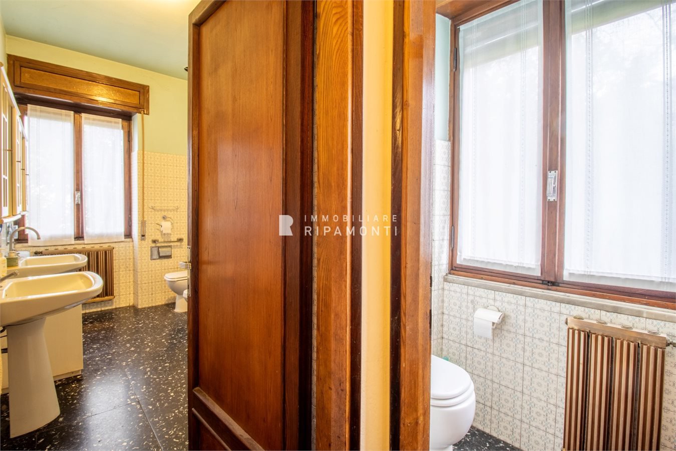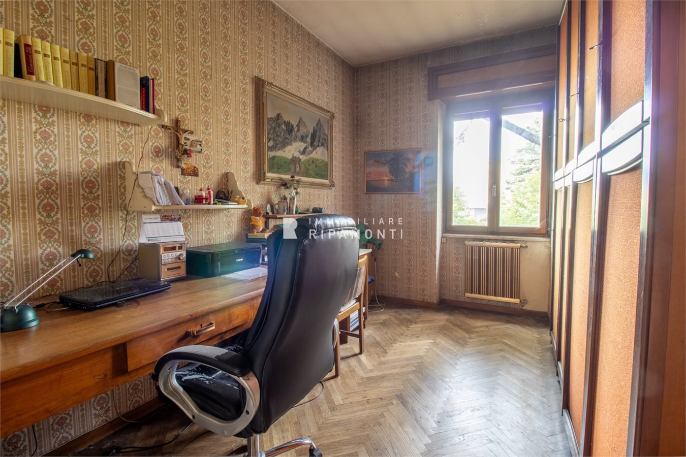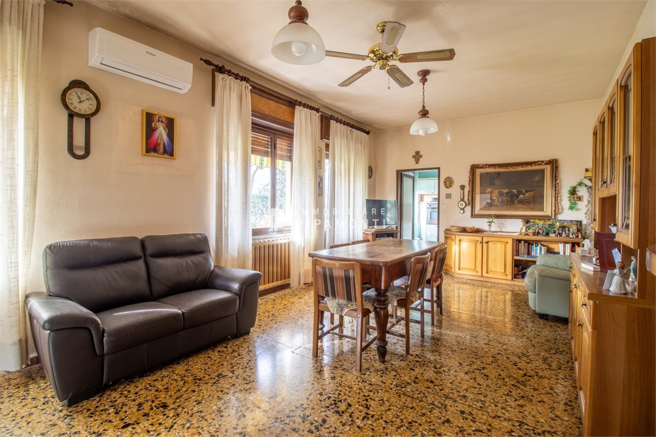 Si compone di scala esterna, ingresso, disimpegno, soggiorno, tinello salone, cucina abitabile, quattro camere, studio e due bagni.