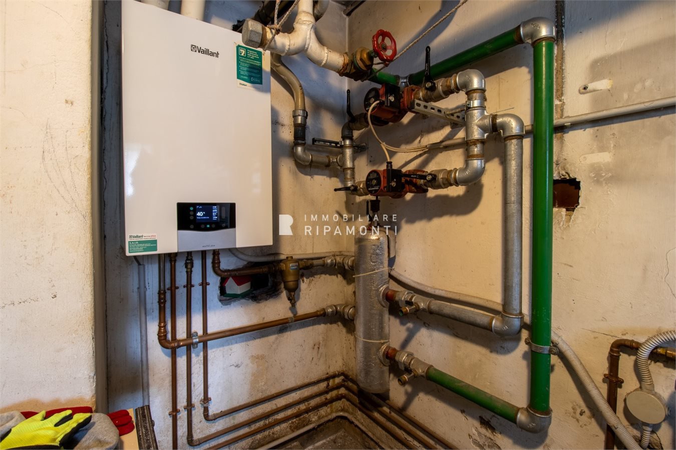 Riscaldamento con caldaia a basamento e metano e radiatori.